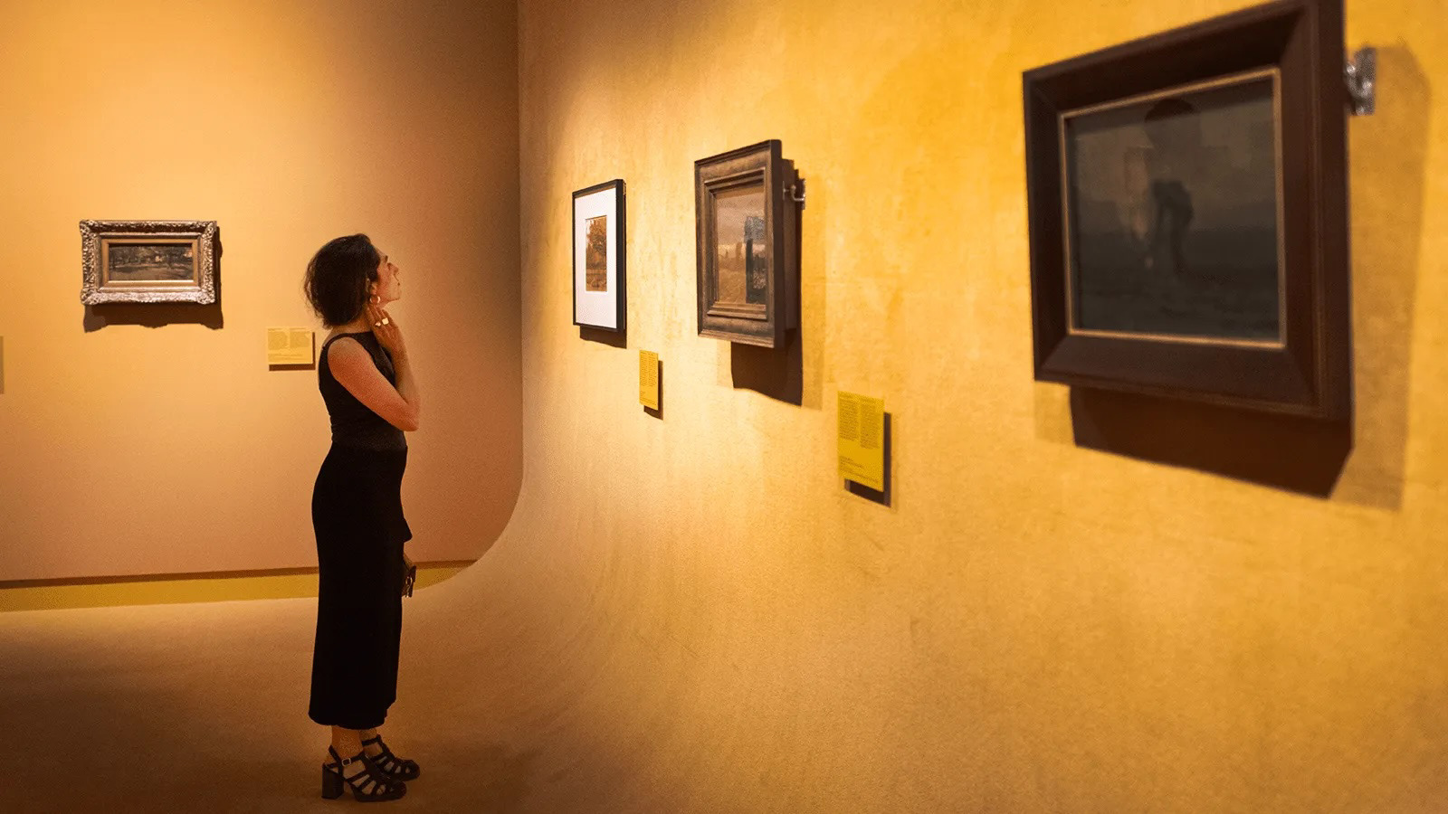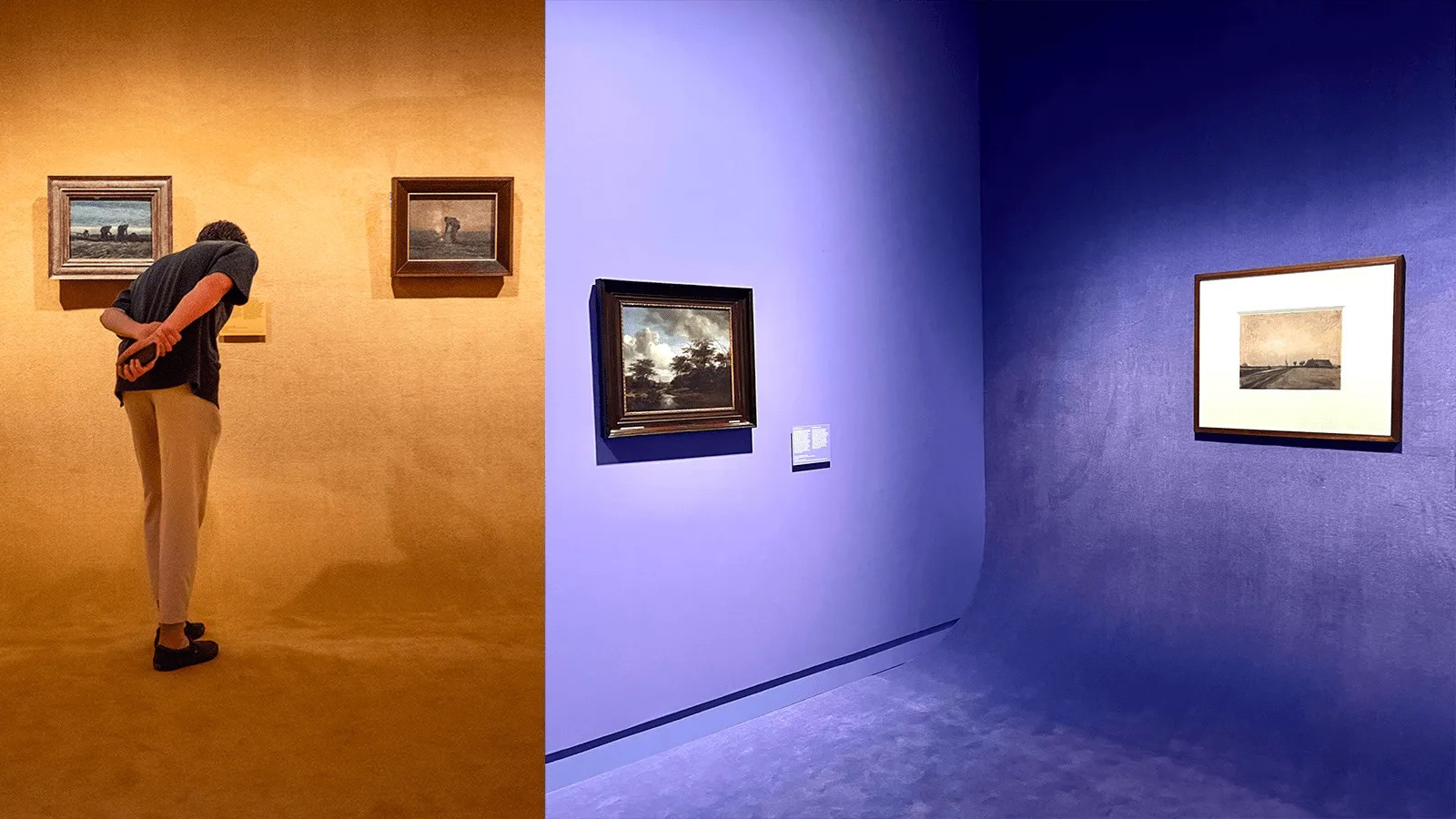 The works of Van Gogh, contemporaries and his sources of inspiration are presented in several spaces inspired by the unique colours in the Drentse landscape as described by Vincent in letters to his brother Theo. The themed exhibition rooms, with carpets that evoke the Drenthe landscape, take the form of a walkable ‘color swatch’ and feature these unique colors. The immersive space does not compete with his real and compelling works being on show, but enhances them. ‘Traveling with Vincent’ seamlessly blends immersive audiovisual storytelling with the genuine authenticity of real artworks.